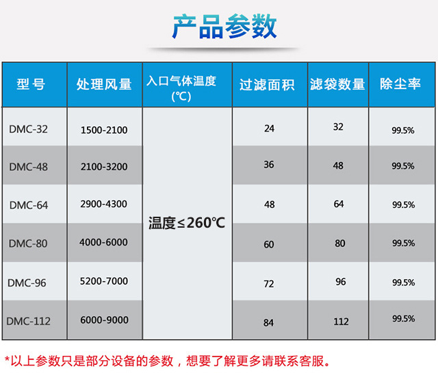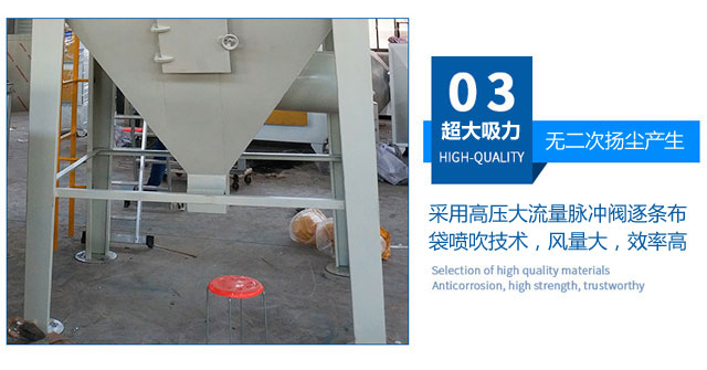 (5)采用玻璃纖維、聚四氟乙烯、P84等高溫濾料時,可在200℃以上的高溫條件下運行。