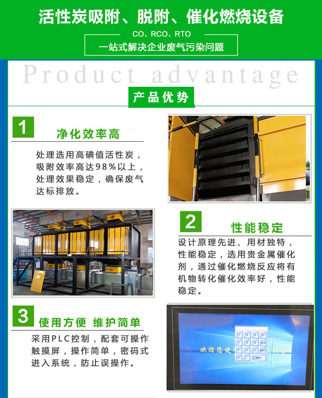 操作簡單、安全、凈化效率高,非常適合化工、噴漆、絕緣材料、涂裝生產等行業的應用。催化燃燒的處理溫度一般是根據廢氣而定,廢氣不同在處理溫度上面也不一樣,溫度一般在250℃-500℃左右。在處理方式上面正常的流程有三個步驟:吸附、脫附、燃燒三步。