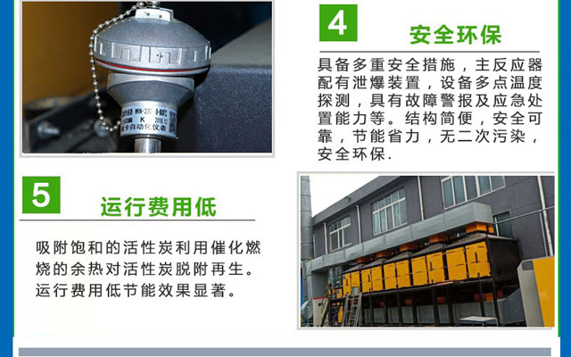 5、操作費用比較低,如果有機廢氣的濃度達到1000mg/m3以上時,凈化設備當中的加熱室是不要需進行輔助加熱的,這樣可以有效地節約的加熱時所生產的費用。