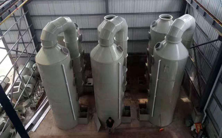 當高溫廢氣或夾雜著粉塵顆粒物的有機廢氣自下而上經過旋流凈化噴淋塔時,在風機的負壓作用下,粉塵顆粒便會經過噴淋水的沖洗,直接進入塔的水池部位,形成沉淀物,我們只需定期清撈、運輸出去即可,而高溫氣體經過水噴淋的作用同時也達到了降溫效果,如果氣體中含有硫化物或氮化物等廢氣的話,該凈化塔通過填充中和藥劑,也可以達到脫硫脫硝的效果。